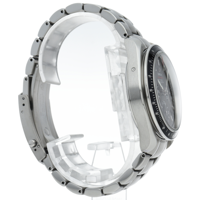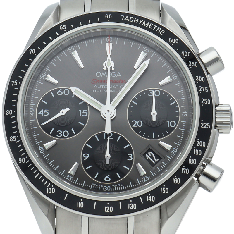 オメガの人気シリーズ「スピードマスター デイト」のクロノメーター規格をパスしたモデル。実用性とデザイン性を兼ね備えた人気の1本。