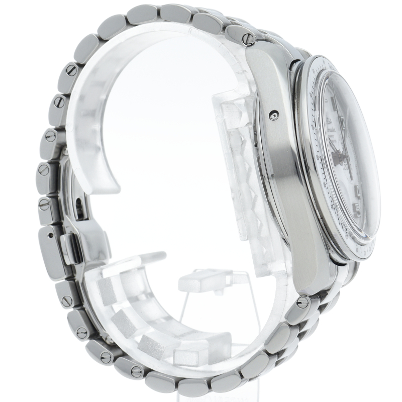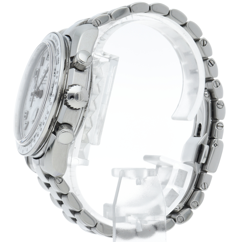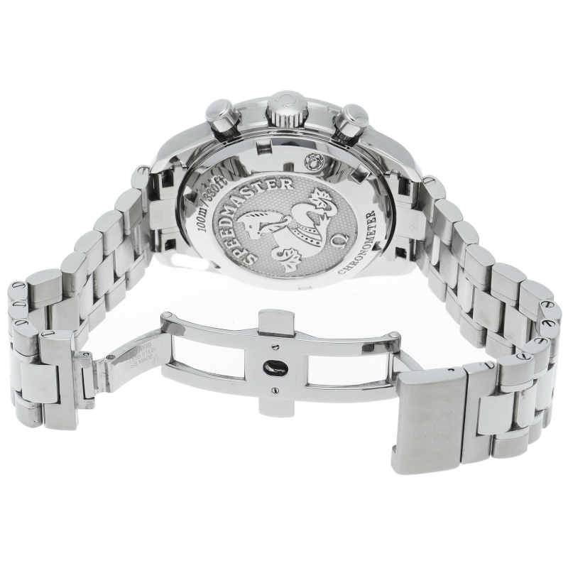 今までのモデルと比べ、ブレスレットが変更され、重量感のあるしっかりとしたタイプになりました。クロノメーター規格をパスしたムーブメントなど、各部が進化した新世代のスピードマスターです。