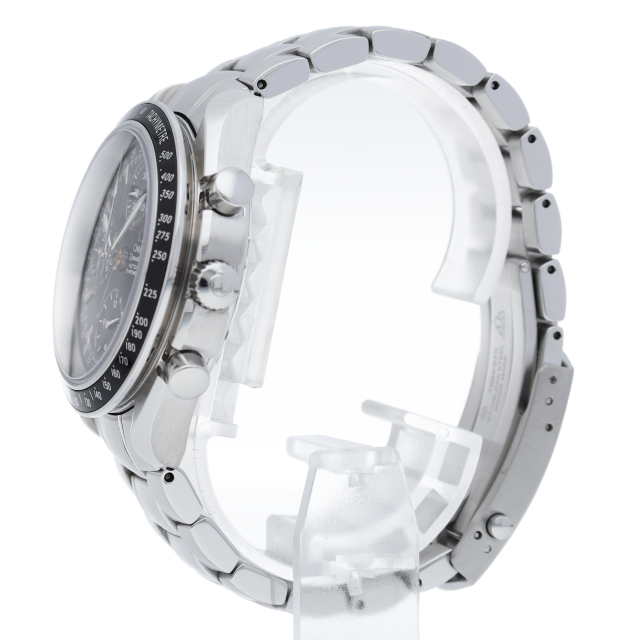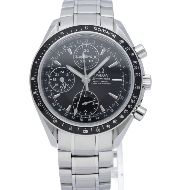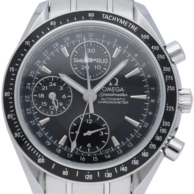 オメガの人気「スピードマスター」。クロノグラフ、月・日・曜日表示機能がついた便利な多機能ウォッチ。モデルチェンジに伴い高級感がアップした1本。