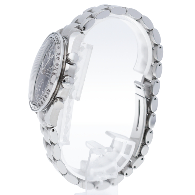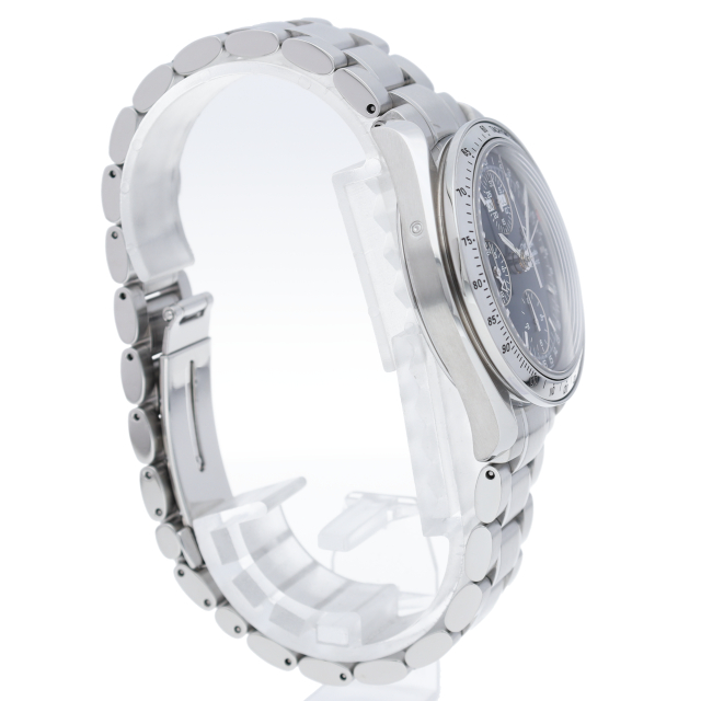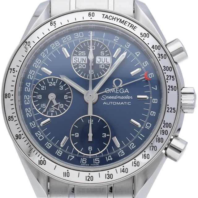 オメガの人気「スピードマスター」。クロノグラフ、月・日・曜日表示機能がついた便利な多機能ウォッチ。モデルチェンジに伴い高級感がアップした1本。