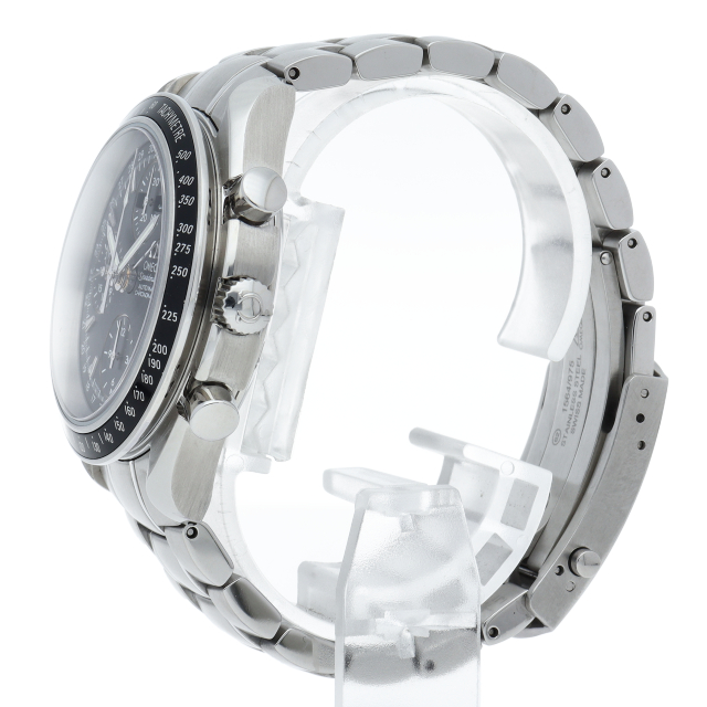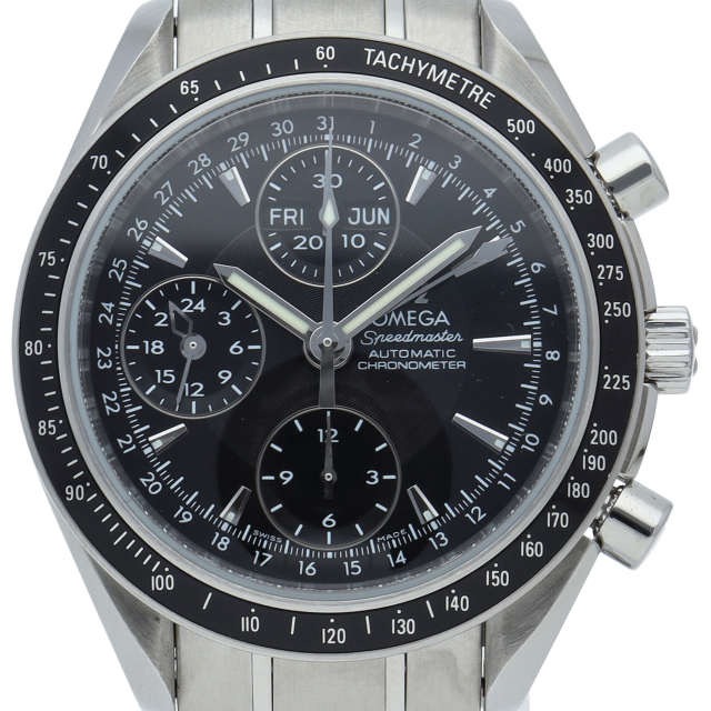 オメガの人気「スピードマスター」。クロノグラフ、月・日・曜日表示機能がついた便利な多機能ウォッチ。モデルチェンジに伴い高級感がアップした1本。