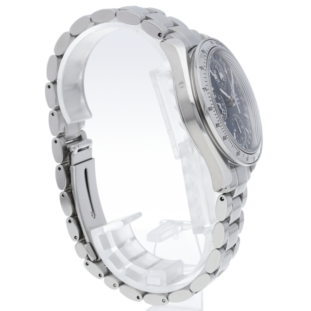 オメガの人気「スピードマスター」。クロノグラフ、月・日・曜日表示機能がついた便利な多機能ウォッチ。モデルチェンジに伴い高級感がアップした1本。