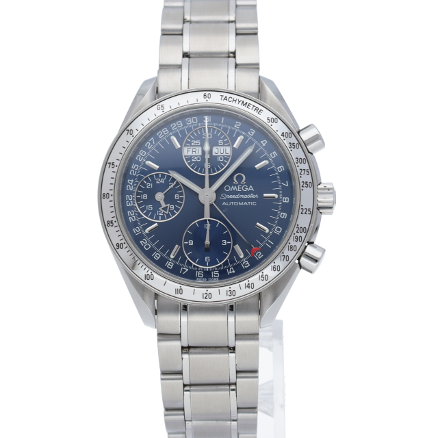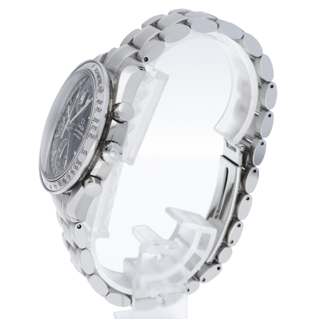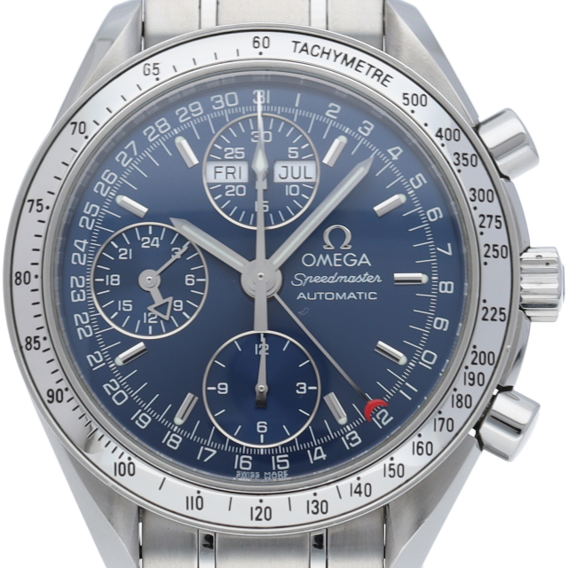 オメガの人気「スピードマスター」。クロノグラフ、月・日・曜日表示機能がついた便利な多機能ウォッチ。モデルチェンジに伴い高級感がアップした1本。
