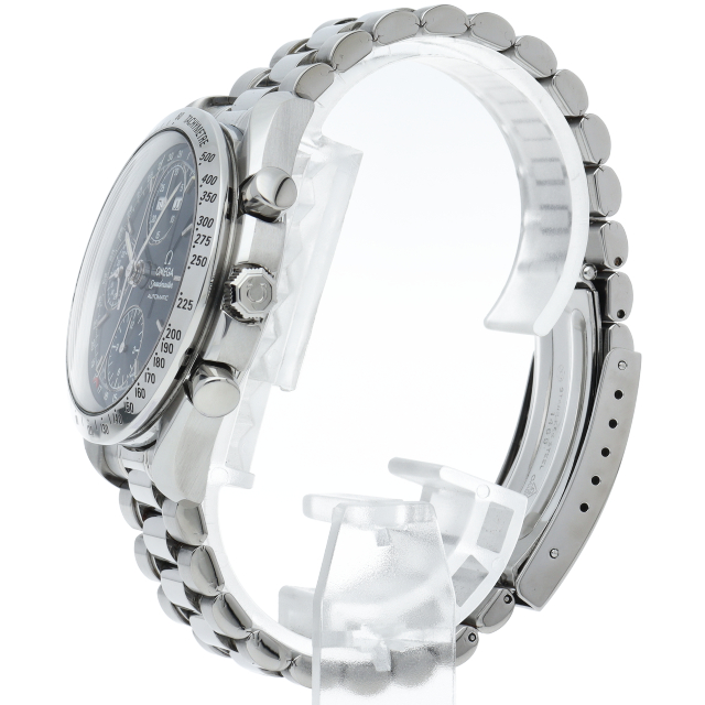 オメガの人気「スピードマスター」。クロノグラフ、月・日・曜日表示機能がついた便利な多機能ウォッチ。モデルチェンジに伴い高級感がアップした1本。