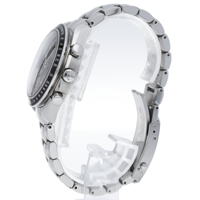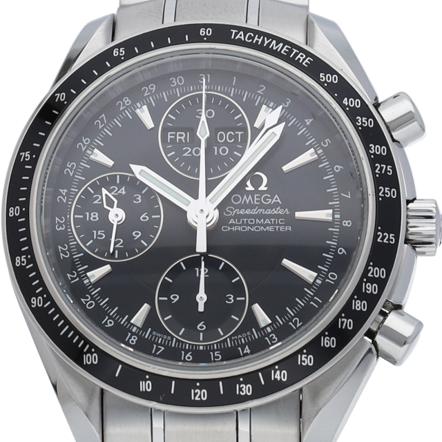 オメガの人気「スピードマスター」。クロノグラフ、月・日・曜日表示機能がついた便利な多機能ウォッチ。モデルチェンジに伴い高級感がアップした1本。
