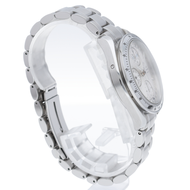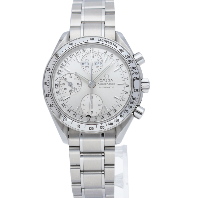 オメガの人気ウォッチ「スピードマスター」。クロノグラフ、月・日・曜日表示機能がついた便利な多機能ウォッチ。