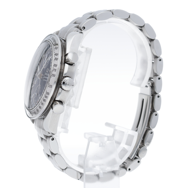 オメガの人気「スピードマスター」。クロノグラフ、月・日・曜日表示機能がついた便利な多機能ウォッチ。モデルチェンジに伴い高級感がアップした1本。