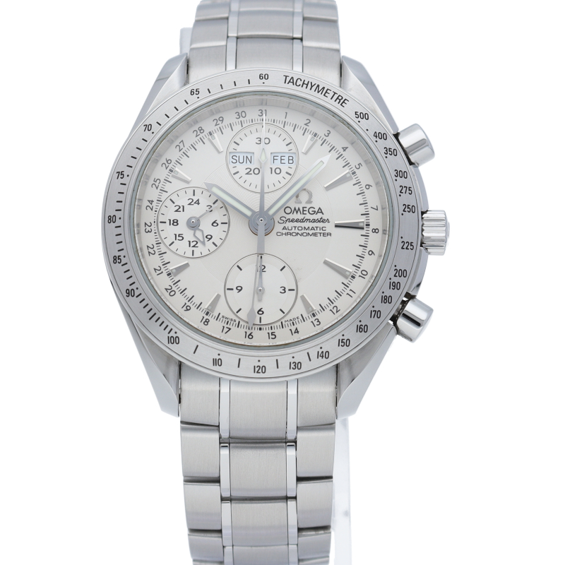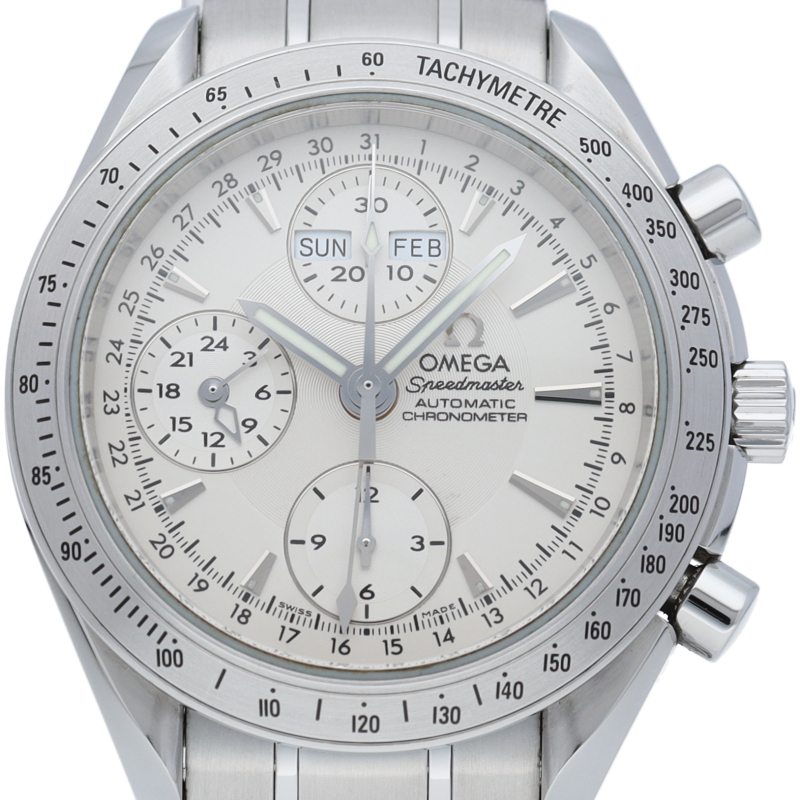 オメガの人気「スピードマスター」。クロノグラフ、月・日・曜日表示機能がついた便利な多機能ウォッチ。スタイルを選ばずにご使用いただける便利な1本。