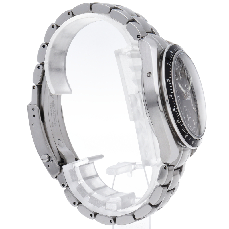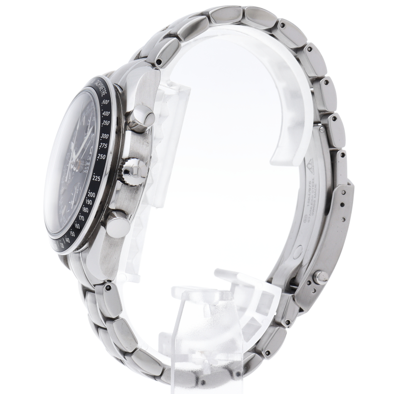 オメガの人気「スピードマスター」。クロノグラフ、月・日・曜日表示機能がついた便利な多機能ウォッチ。モデルチェンジに伴い高級感がアップした1本。