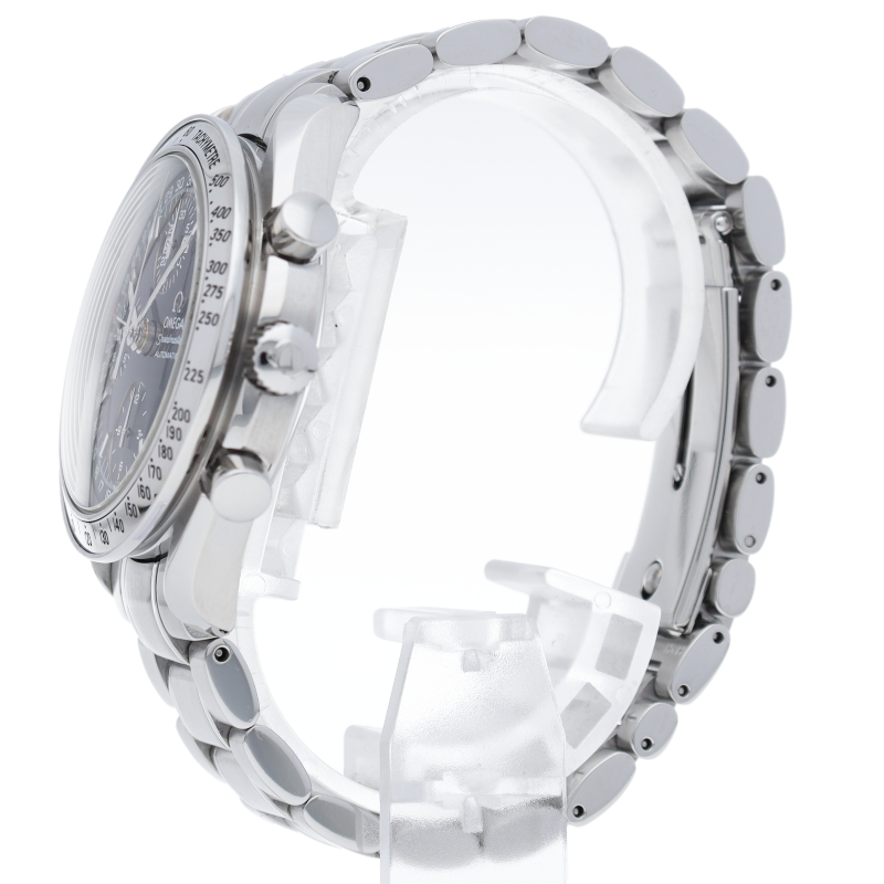 オメガの人気「スピードマスター」。クロノグラフ、月・日・曜日表示機能がついた便利な多機能ウォッチ。モデルチェンジに伴い高級感がアップした1本。