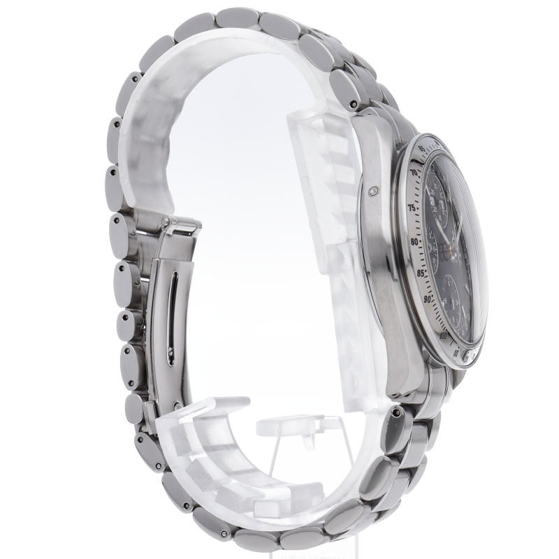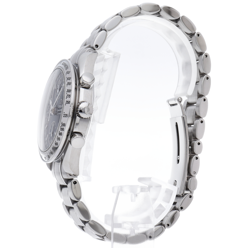 オメガの人気「スピードマスター」。クロノグラフ、月・日・曜日表示機能がついた便利な多機能ウォッチ。モデルチェンジに伴い高級感がアップした1本。