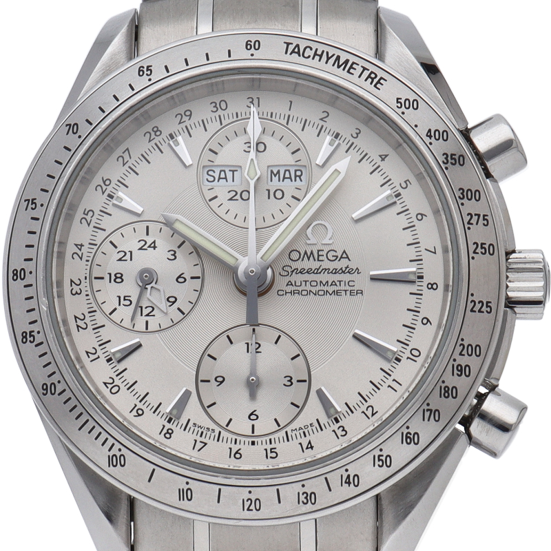 オメガの人気「スピードマスター」。クロノグラフ、月・日・曜日表示機能がついた便利な多機能ウォッチ。スタイルを選ばずにご使用いただける便利な1本。