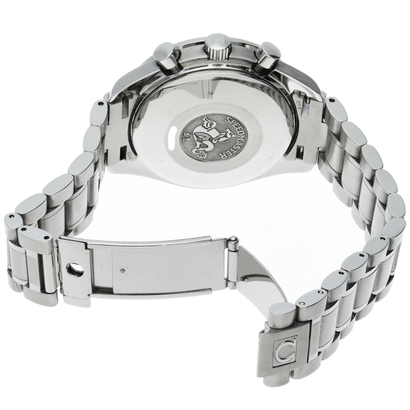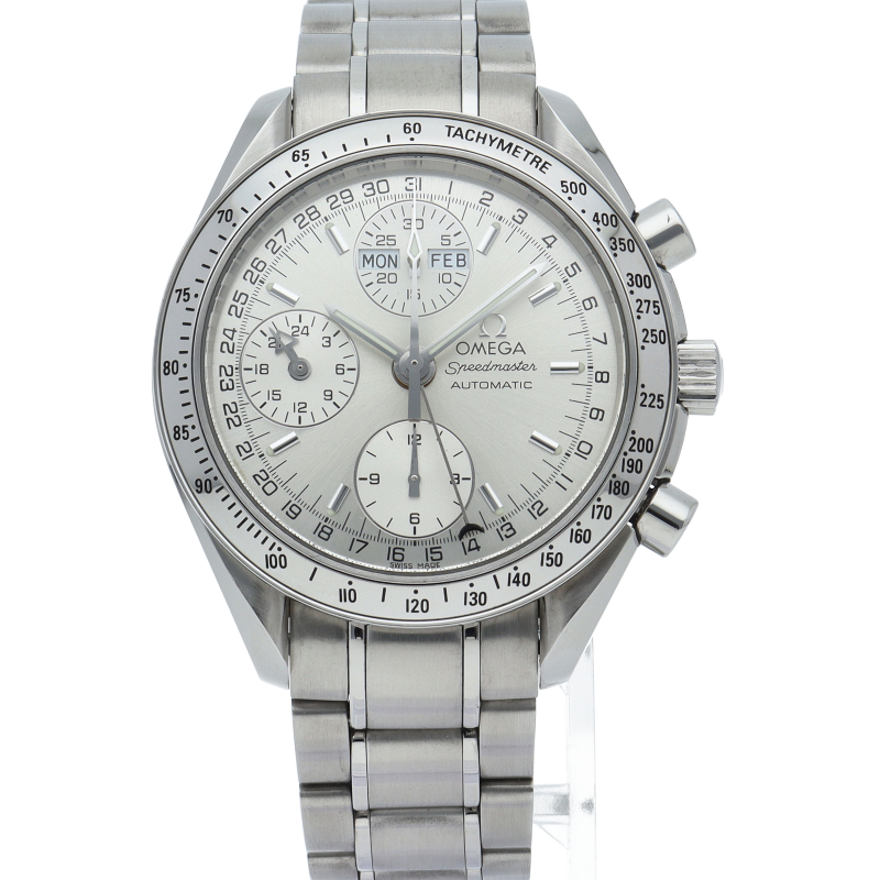 オメガの人気ウォッチ「スピードマスター」。クロノグラフ、月・日・曜日表示機能がついた便利な多機能ウォッチ。