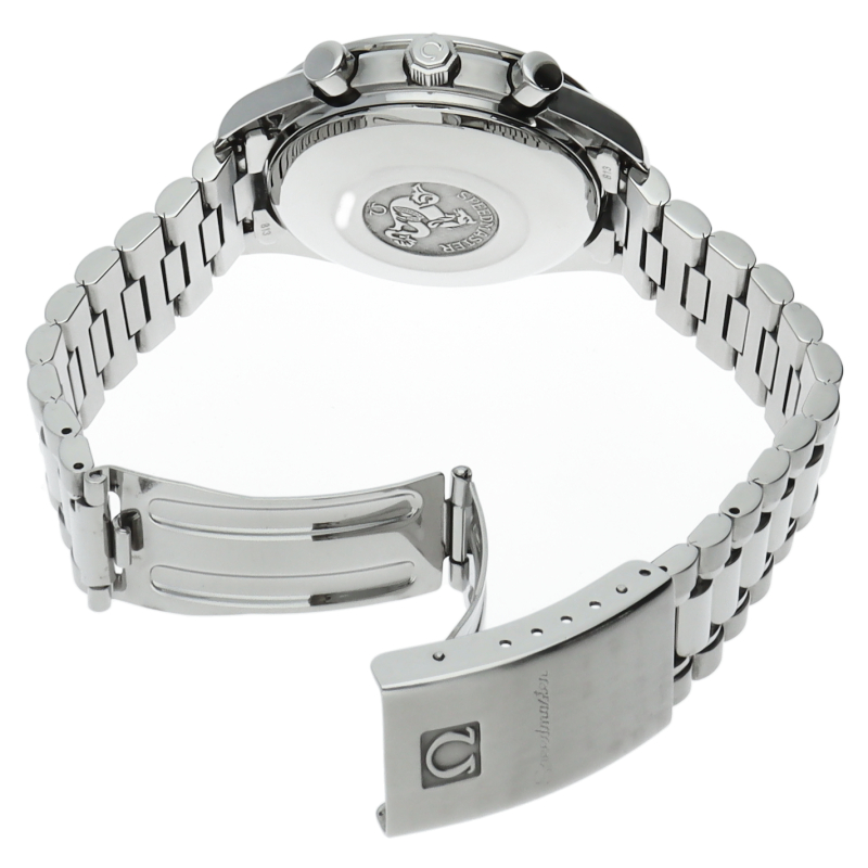 オメガの人気ウォッチ「スピードマスター」。クロノグラフ、月・日・曜日表示機能がついた便利な多機能ウォッチ。