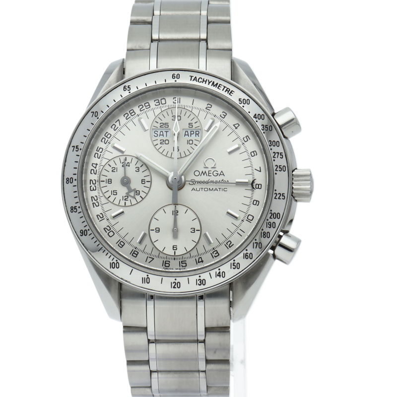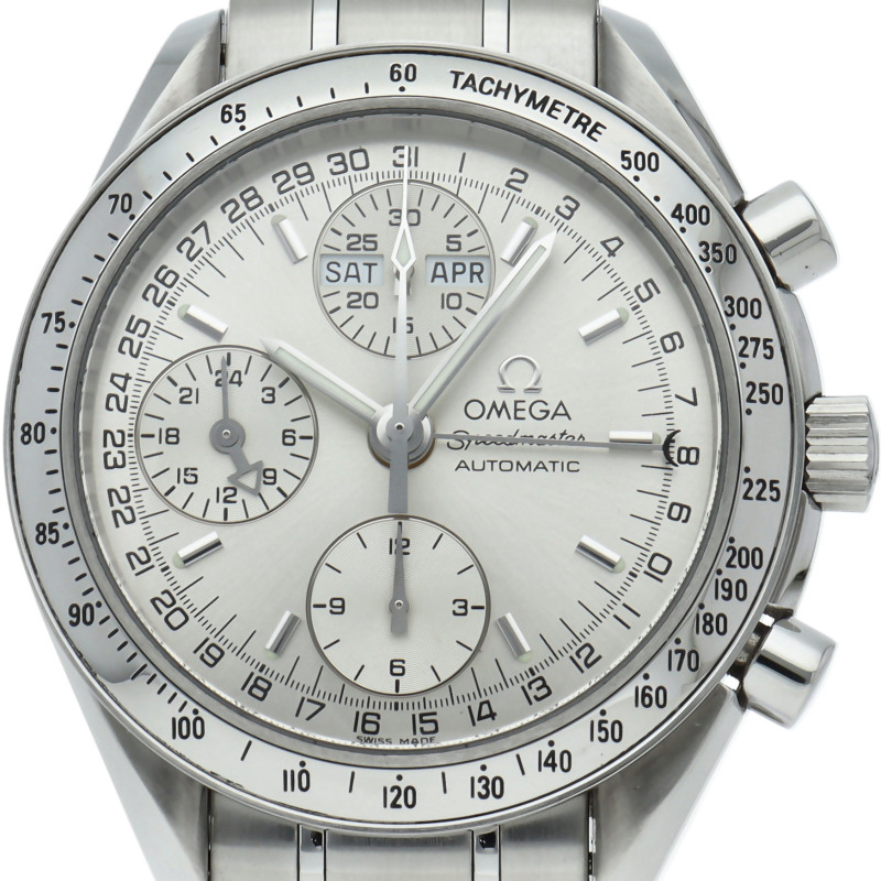 オメガの人気ウォッチ「スピードマスター」。クロノグラフ、月・日・曜日表示機能がついた便利な多機能ウォッチ。