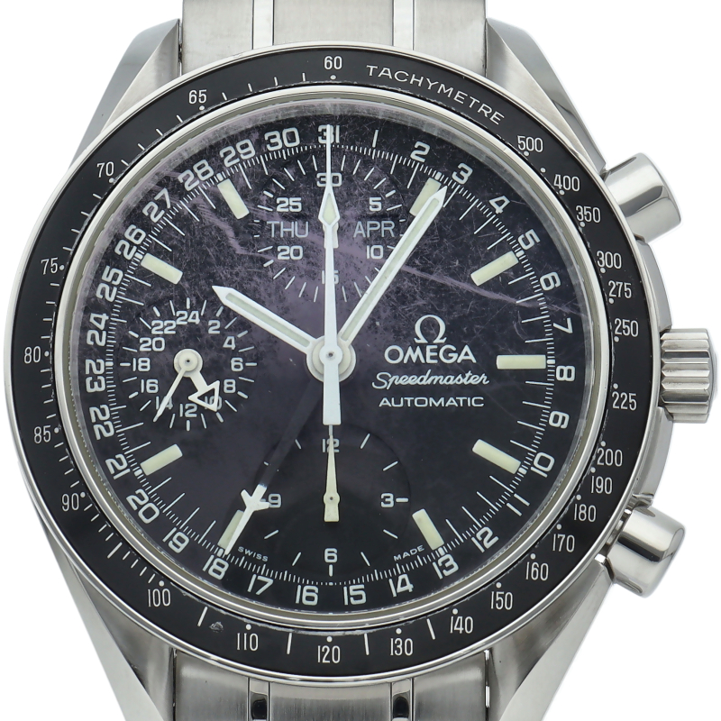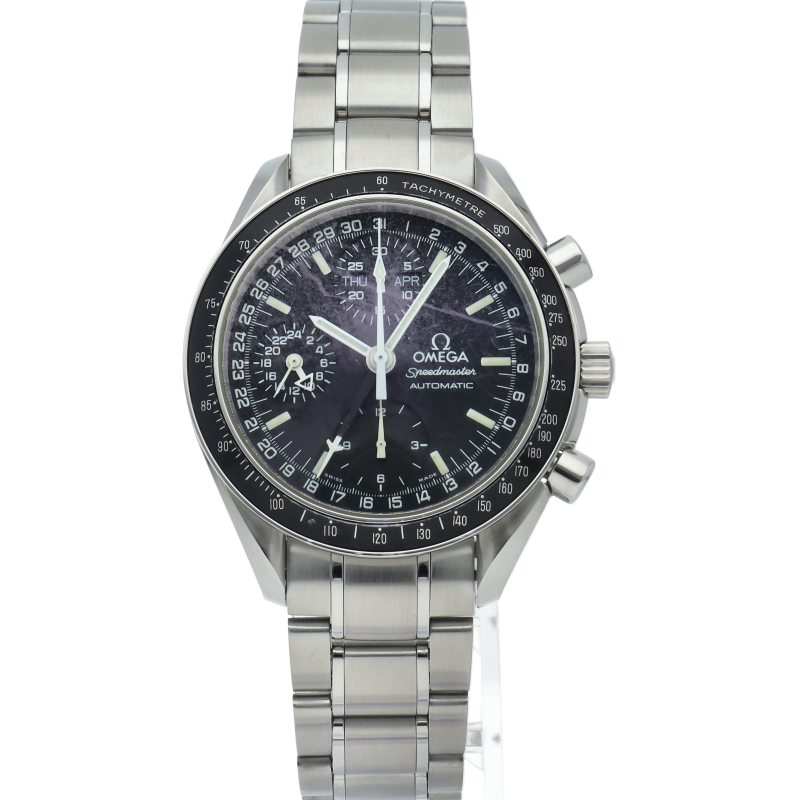 オメガの人気「スピードマスター」。クロノグラフ、月・日・曜日表示機能がついた便利な多機能ウォッチ。スタイルを選ばずにご使用いただける便利な1本。