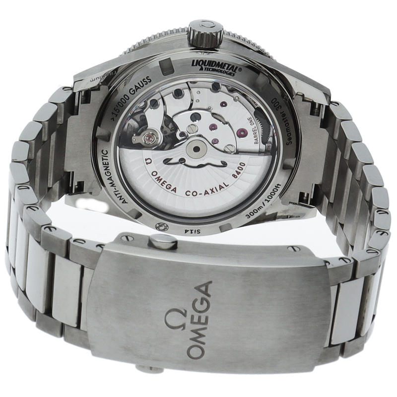 直径41mmのサテン仕上げおよびポリッシュ仕上げが施されたグレード5チタン製ケースには、同素材のブレスレットが付属。透明のケースバックからは、耐磁性を備えたマスター コーアクシャル キャリバー8400を眺めることができます。