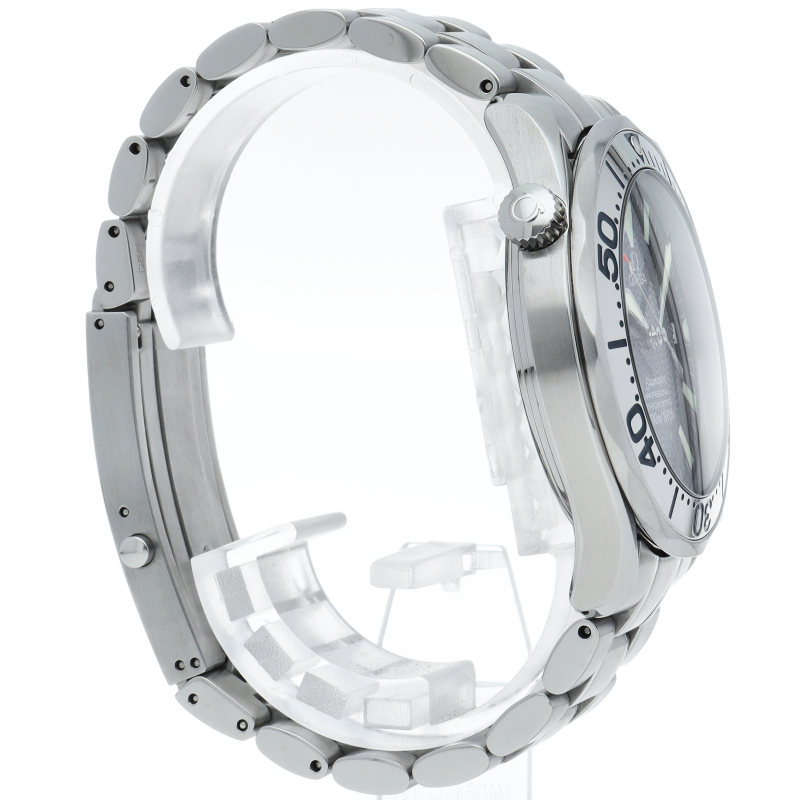 「300m防水」にオメガ得意の「クロノグラフ機能」が加わった「シーマスター プロフェッショナル クロノグラフ」。水圧に対する耐久性を考慮したズッシリとボリューム感のあるケースは、一度着けるとその存在感に魅了されます。