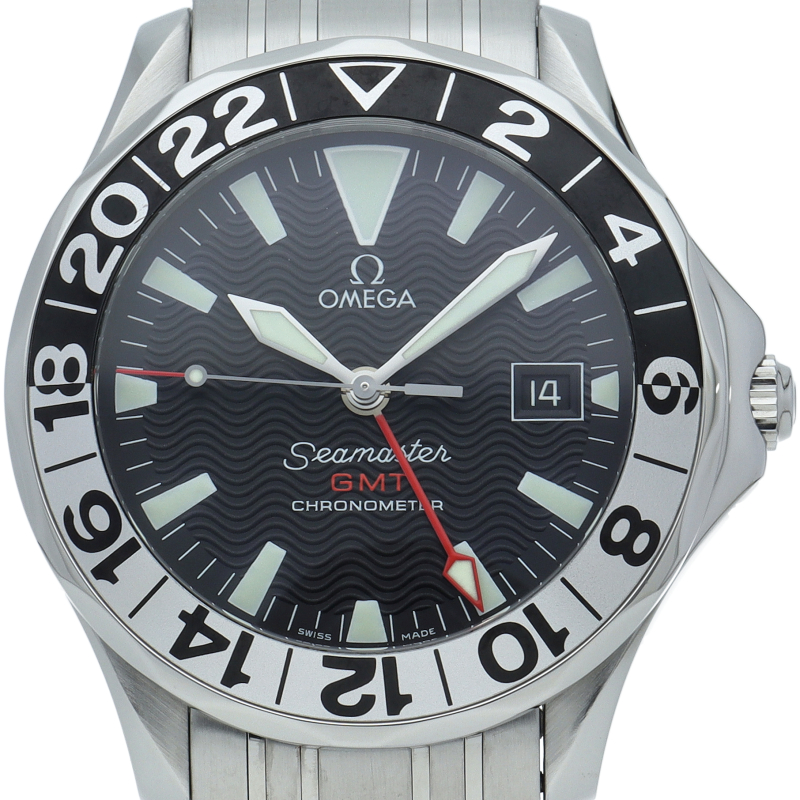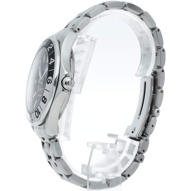 オメガを代表する人気ダイバーズウォッチ「シーマスター」の50周年記念モデル。広い層を満足させられるしっかりとした内容と、コストパフォーマンスの良さがひかります。こちらのモデルもこの販売価格ながら、3タイム表示GMT機能まで付いた優れものです。