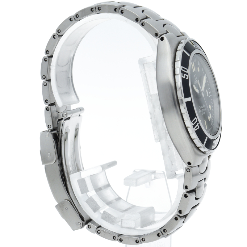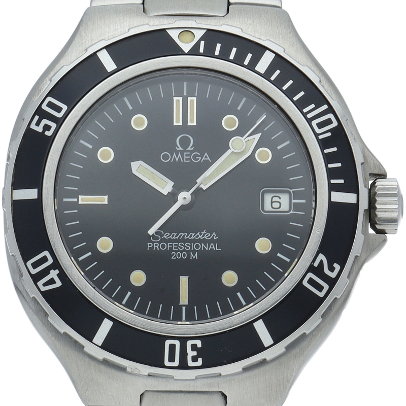 高い耐水性を誇るモデル「シーマスター プロフェッショナル200m」。デザインはジェラルド・ジェンタ氏が手掛けたと言われているダイバーズウオッチになります。普段使いからスーツなどにも相性が良く、幅広くご使用いただけます。