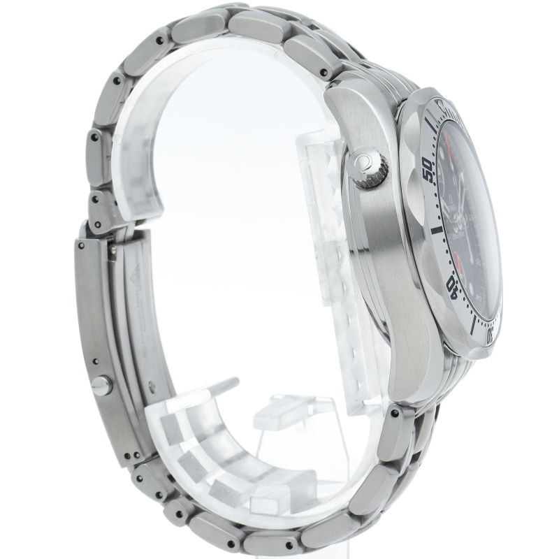 「300m防水」にオメガ得意の「クロノグラフ機能」が加わった「シーマスター プロフェッショナル クロノグラフ」。水圧に対する耐久性を考慮したズッシリとボリューム感のあるケースは、一度着けるとその存在感に魅了されます。