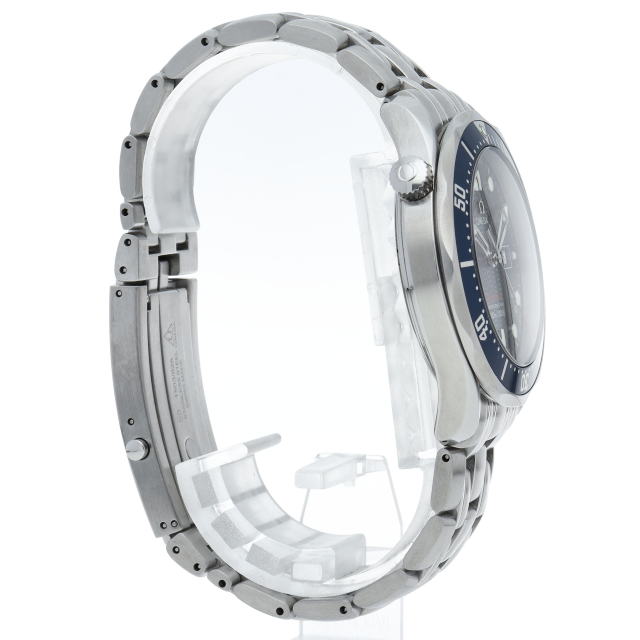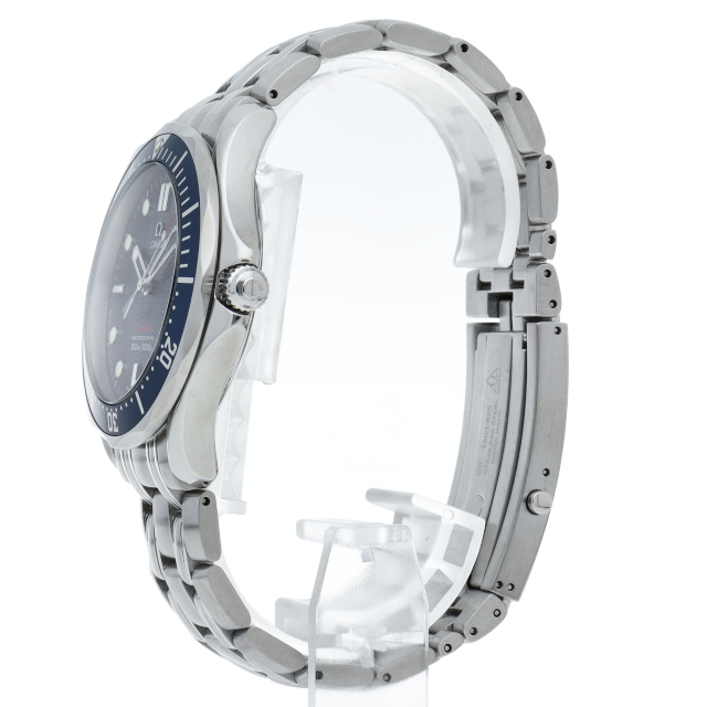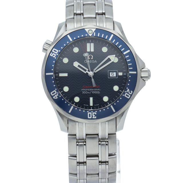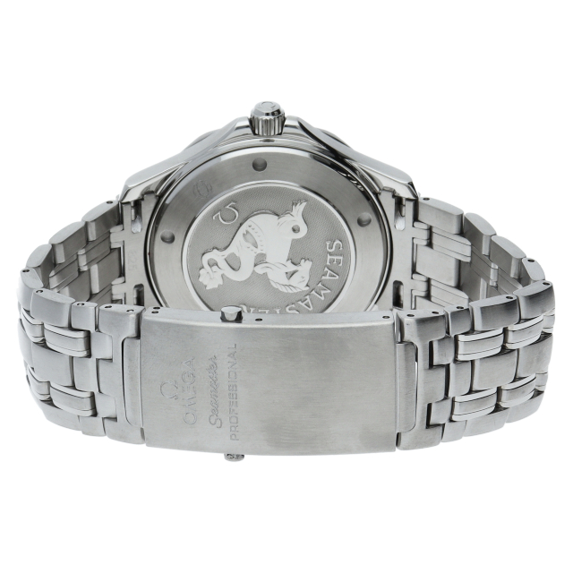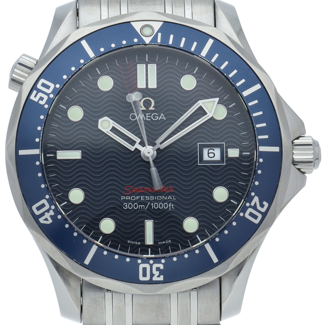 オメガを代表する人気ダイバーズウォッチ「シーマスター」。逆回転防止ベゼル・デイト表示機能等が搭載された本格派ダイバーズウォッチです。仕様変更により文字盤のシーマスターの文字が赤字に変更されております。
