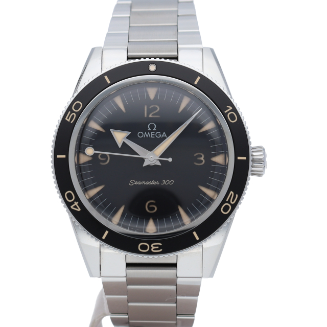 オメガが水中で作業するダイバーや専門家のために特別にデザインした「シーマスター 300」。41mmのステンレススティール製モデルは、ブラックの文字盤と、ヴィンテージスーパールミノヴァを塗布したダイビングスケール付きのブラックのシュウ酸陽極酸化アルミニウム製ベゼルを備えます。コーアクシャル マスター クロノメーター キャリバー8912搭載。