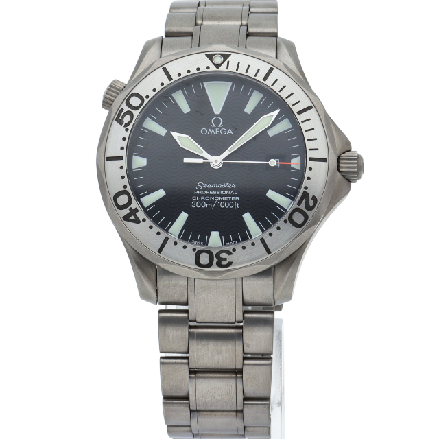 オメガを代表する人気ダイバーズウォッチ「シーマスター」。逆回転防止ベゼル・デイト表示機能等が搭載された本格派ダイバーズウォッチです。チタン素材を採用しておりますので、軽く強くダイバーウォッチにはおすすめの一本です。