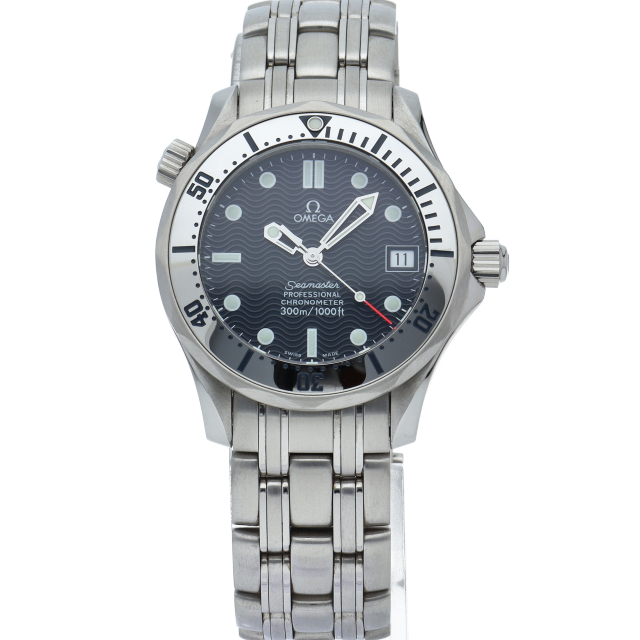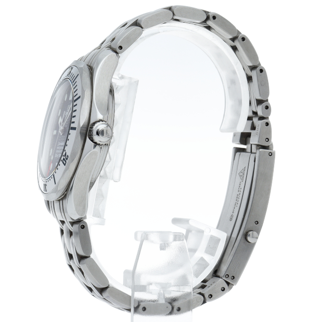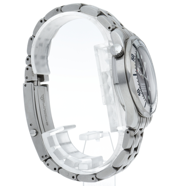 オメガを代表する人気ダイバーズウォッチ「シーマスター」。マットなシルバーブレス、バックルには、エクステンションパーツとダブルプッシュ式を採用。ウエットスーツの上からでも着脱が容易です。