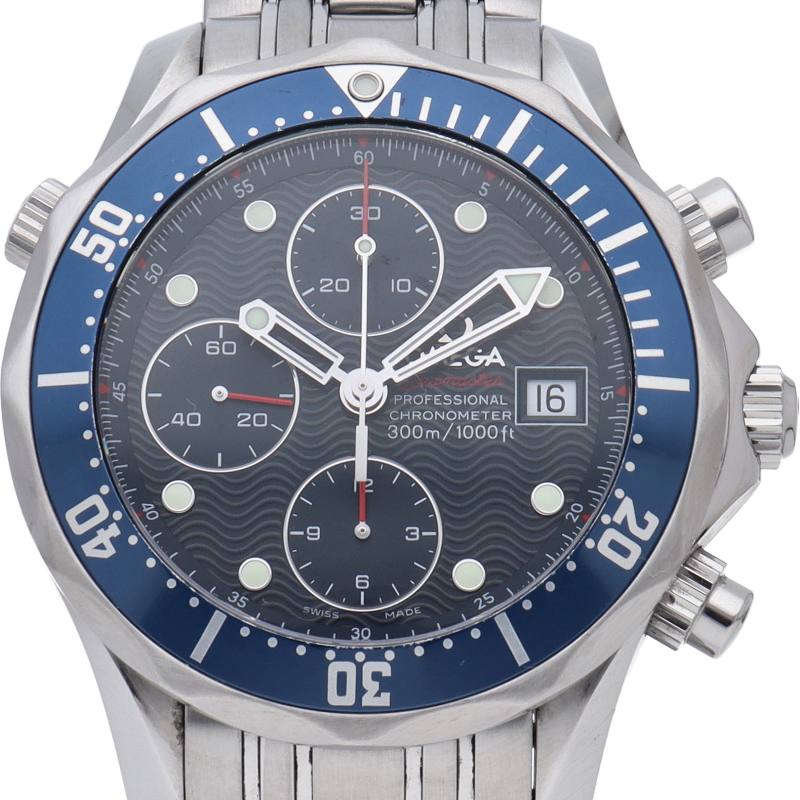 オメガを代表する人気ダイバーズウォッチ「シーマスター」。逆回転防止ベゼル・デイト表示機能等が搭載された本格派ダイバーズウォッチです。クロノグラフ機能搭載。
