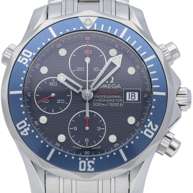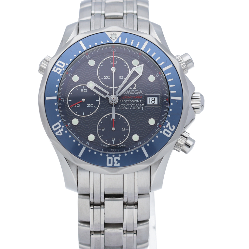 オメガを代表する人気ダイバーズウォッチ「シーマスター」。逆回転防止ベゼル・デイト表示機能等が搭載された本格派ダイバーズウォッチです。クロノグラフ機能搭載。