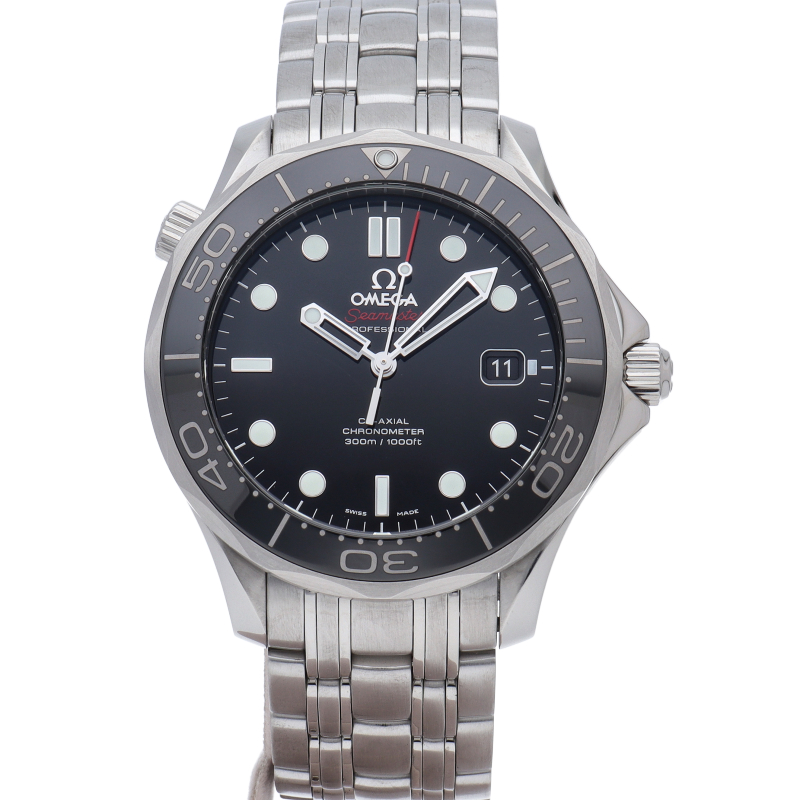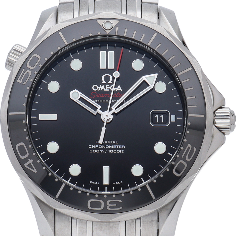 オメガを代表する人気ダイバーズウォッチ「シーマスター」。逆回転防止ベゼル・デイト表示機能等が搭載された本格派ダイバーズウォッチです。ベゼルが傷のつきにくいセラミック仕様に変更されました。