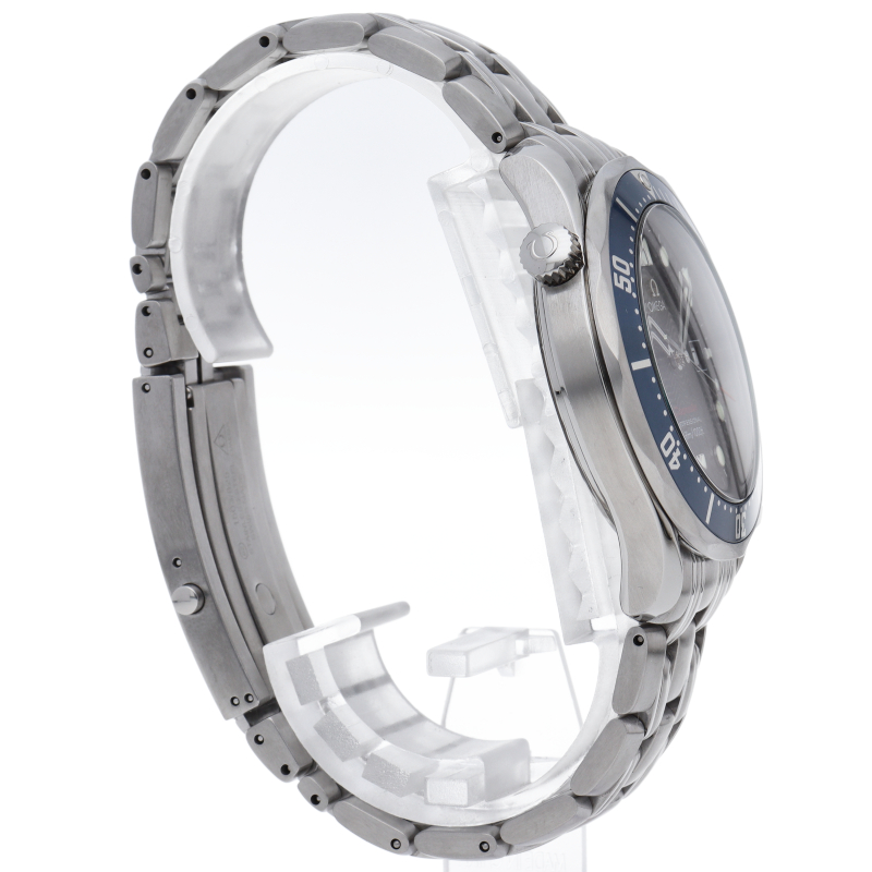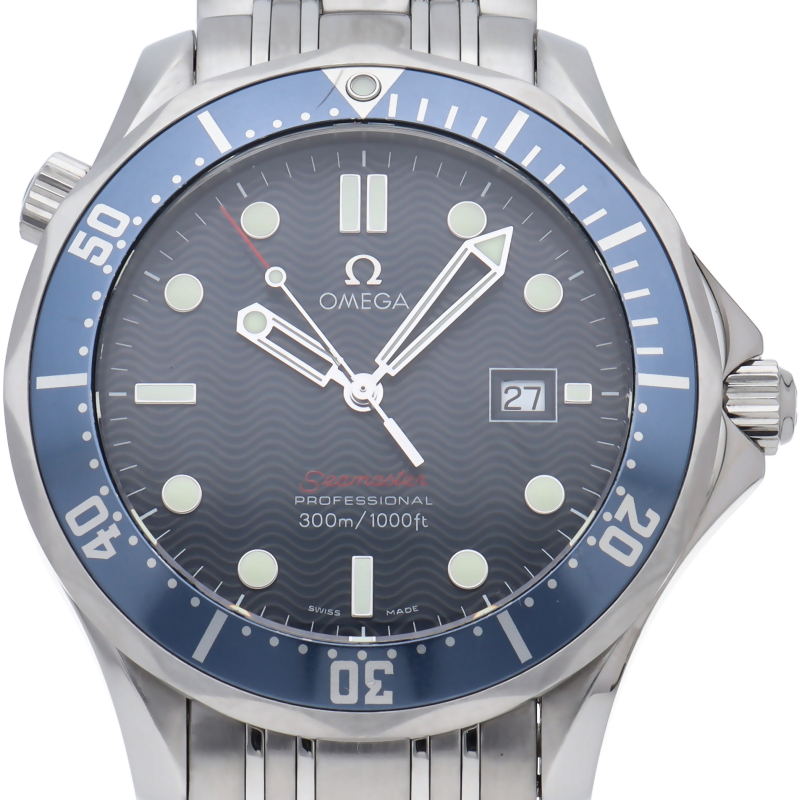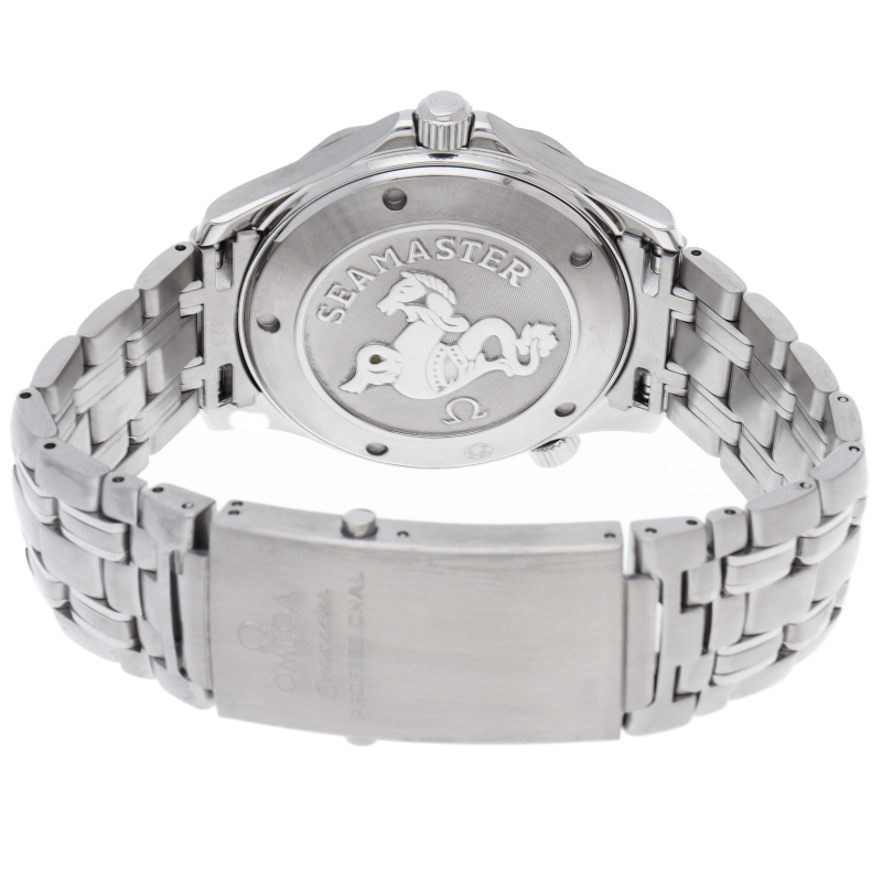 オメガを代表する人気ダイバーズウォッチ「シーマスター」。逆回転防止ベゼル・デイト表示機能等が搭載された本格派ダイバーズウォッチです。仕様変更により文字盤のシーマスターの文字が赤字に変更されております。