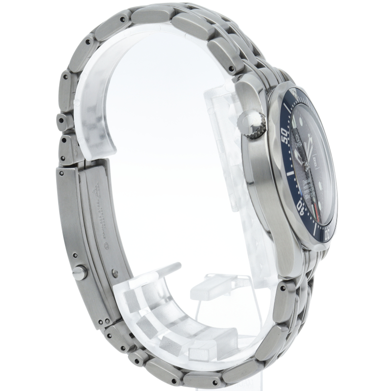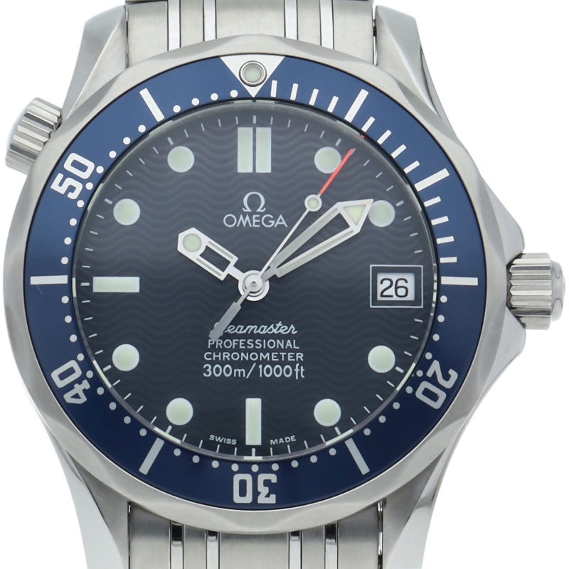 オメガを代表する人気ダイバーズウォッチ「シーマスター」。300mの防水性能を備え、文字盤には青い波の模様が入った実用性の高いベーシックなモデルです。