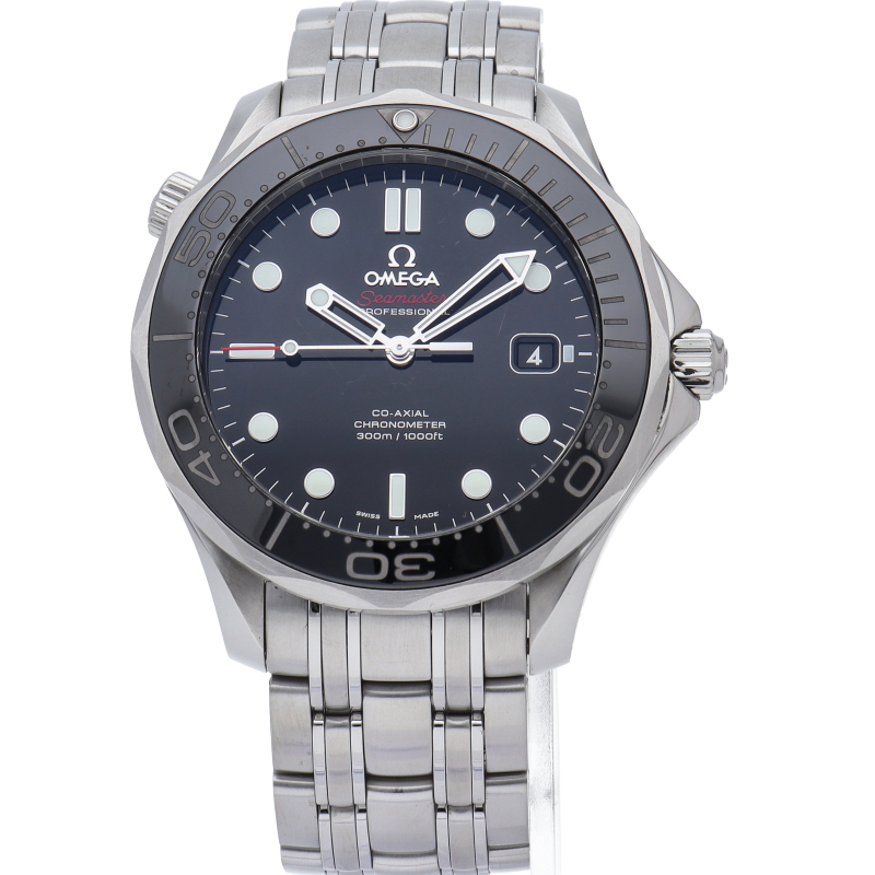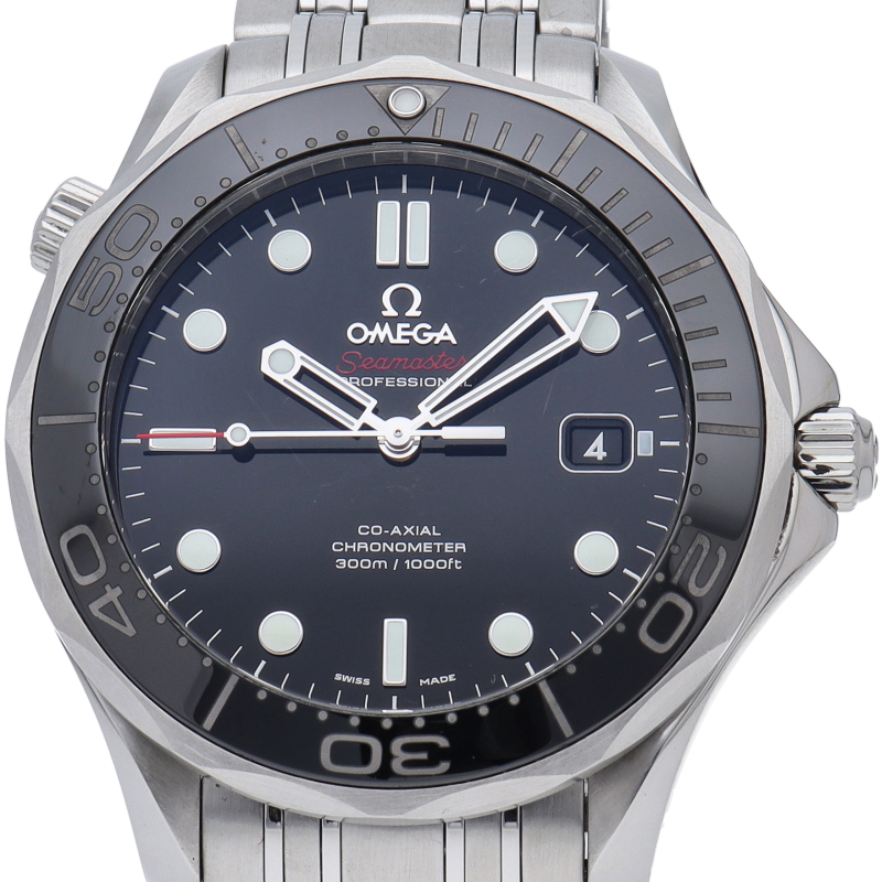 オメガを代表する人気ダイバーズウォッチ「シーマスター」。逆回転防止ベゼル・デイト表示機能等が搭載された本格派ダイバーズウォッチです。ベゼルが傷のつきにくいセラミック仕様に変更されました。