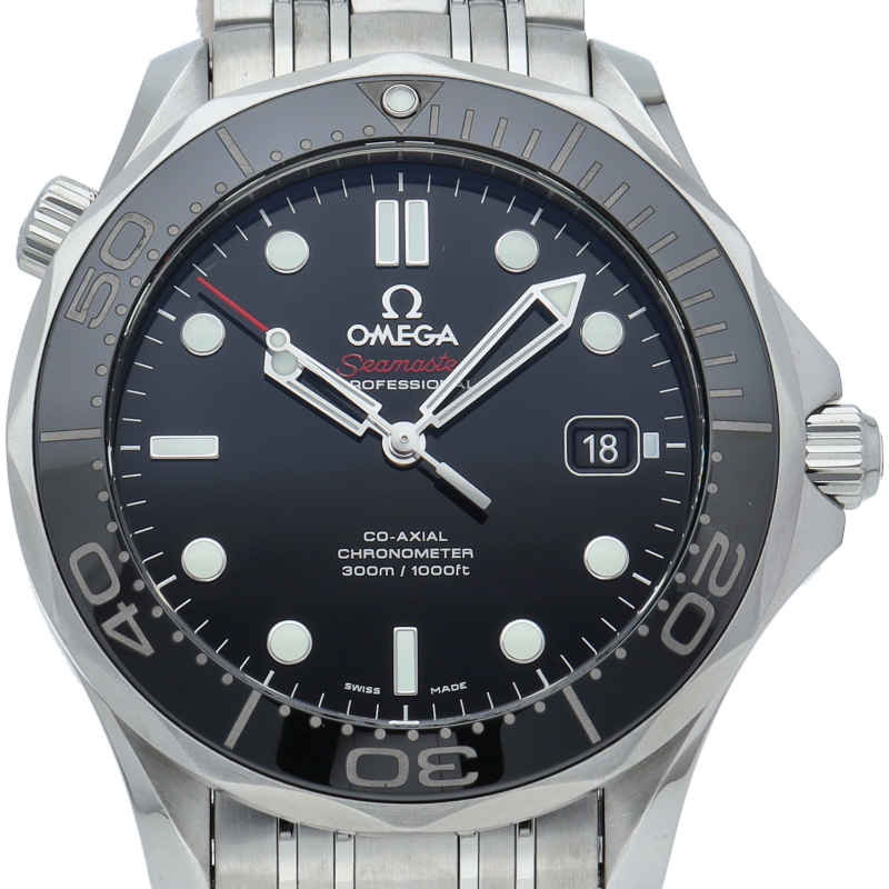 オメガを代表する人気ダイバーズウォッチ「シーマスター」。逆回転防止ベゼル・デイト表示機能等が搭載された本格派ダイバーズウォッチです。ベゼルが傷のつきにくいセラミック仕様に変更されました。