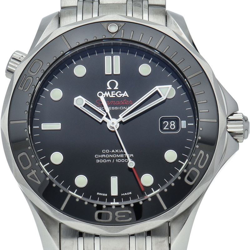 オメガを代表する人気ダイバーズウォッチ「シーマスター」。逆回転防止ベゼル・デイト表示機能等が搭載された本格派ダイバーズウォッチです。ベゼルが傷のつきにくいセラミック仕様に変更されました。