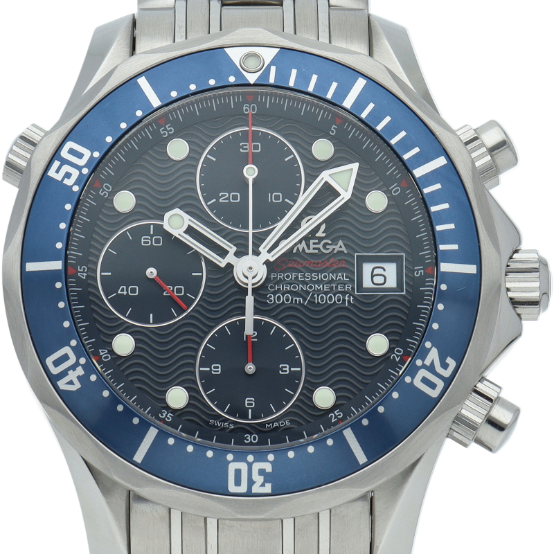 オメガを代表する人気ダイバーズウォッチ「シーマスター」。逆回転防止ベゼル・デイト表示機能等が搭載された本格派ダイバーズウォッチです。クロノグラフ機能搭載。