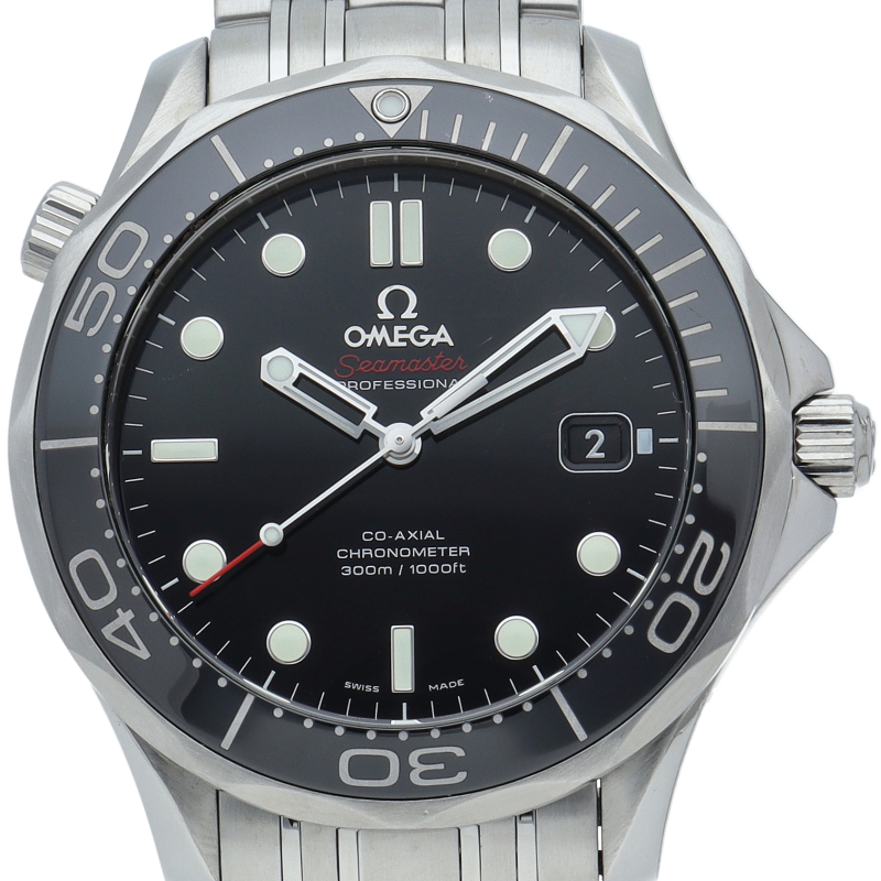 オメガを代表する人気ダイバーズウォッチ「シーマスター」。逆回転防止ベゼル・デイト表示機能等が搭載された本格派ダイバーズウォッチです。ベゼルが傷のつきにくいセラミック仕様に変更されました。