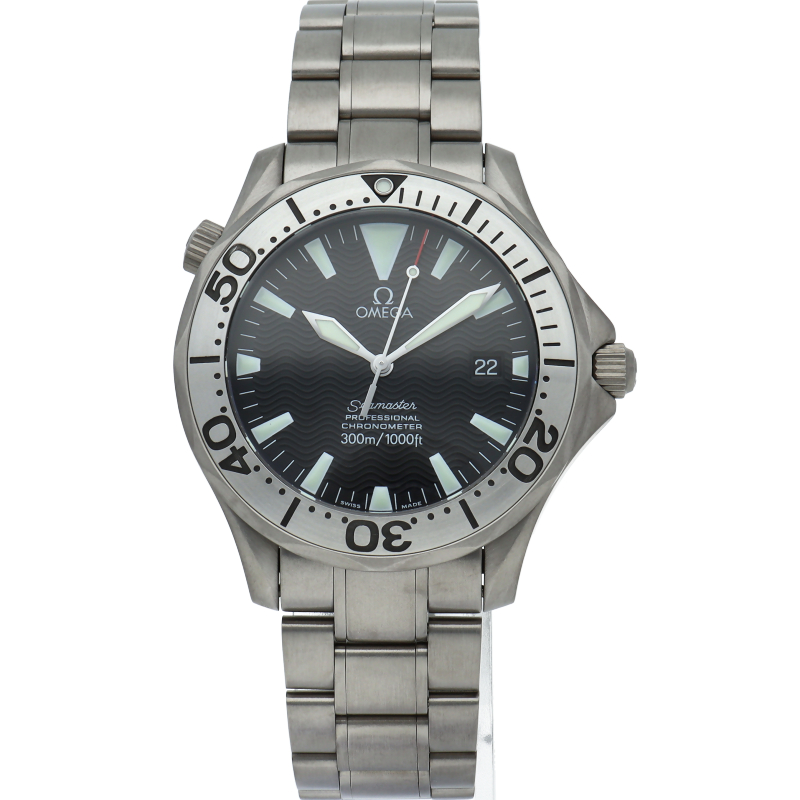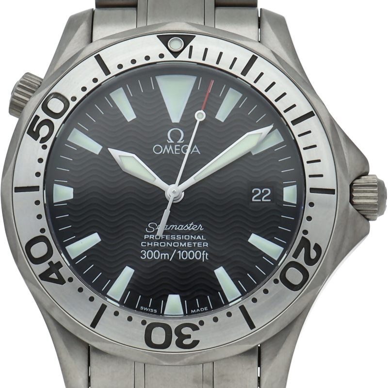オメガを代表する人気ダイバーズウォッチ「シーマスター」。逆回転防止ベゼル・デイト表示機能等が搭載された本格派ダイバーズウォッチです。チタン素材を採用しておりますので、軽く強くダイバーウォッチにはおすすめの一本です。