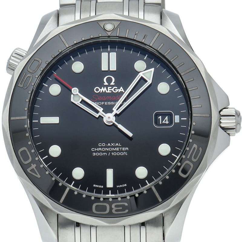 オメガを代表する人気ダイバーズウォッチ「シーマスター」。逆回転防止ベゼル・デイト表示機能等が搭載された本格派ダイバーズウォッチです。ベゼルが傷のつきにくいセラミック仕様に変更されました。