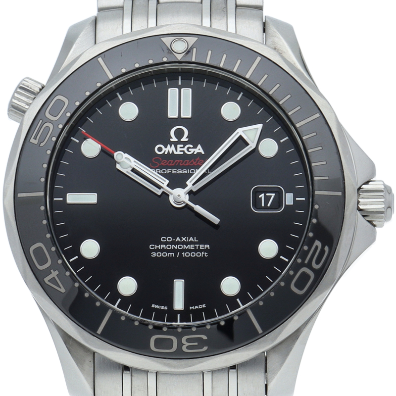 オメガを代表する人気ダイバーズウォッチ「シーマスター」。逆回転防止ベゼル・デイト表示機能等が搭載された本格派ダイバーズウォッチです。ベゼルが傷のつきにくいセラミック仕様に変更されました。