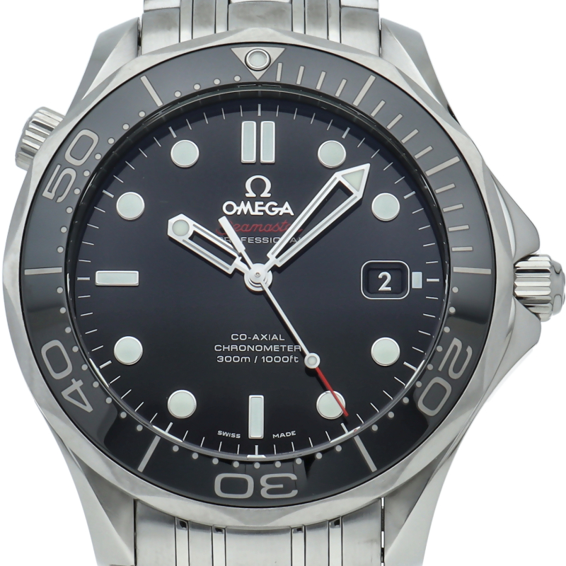 オメガを代表する人気ダイバーズウォッチ「シーマスター」。逆回転防止ベゼル・デイト表示機能等が搭載された本格派ダイバーズウォッチです。ベゼルが傷のつきにくいセラミック仕様に変更されました。