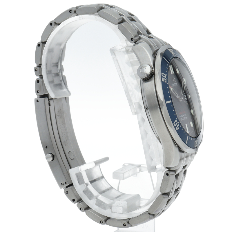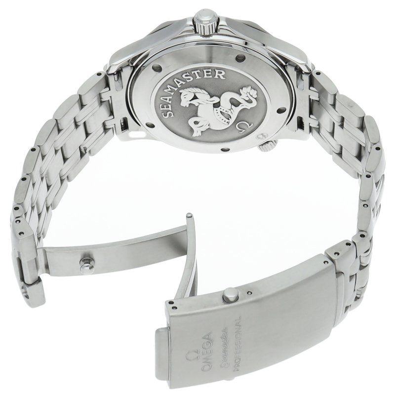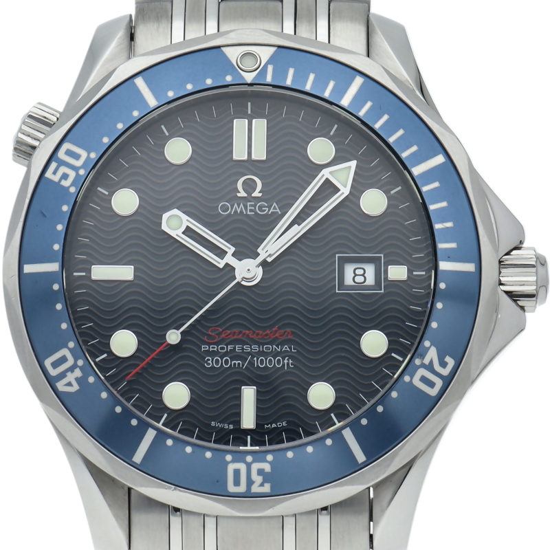オメガを代表する人気ダイバーズウォッチ「シーマスター」。逆回転防止ベゼル・デイト表示機能等が搭載された本格派ダイバーズウォッチです。仕様変更により文字盤のシーマスターの文字が赤字に変更されております。
