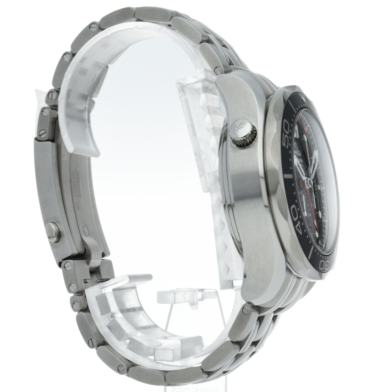 こちらのGMTモデルでは、レッドのGMT針に合わせて同色の24時間スケールを採用。ムーブメントは、オメガが誇るコーアクシャルエスケープメントを採用したCal.3603を搭載しており、オメガならではのダイビングクロノグラフに仕上げられています。