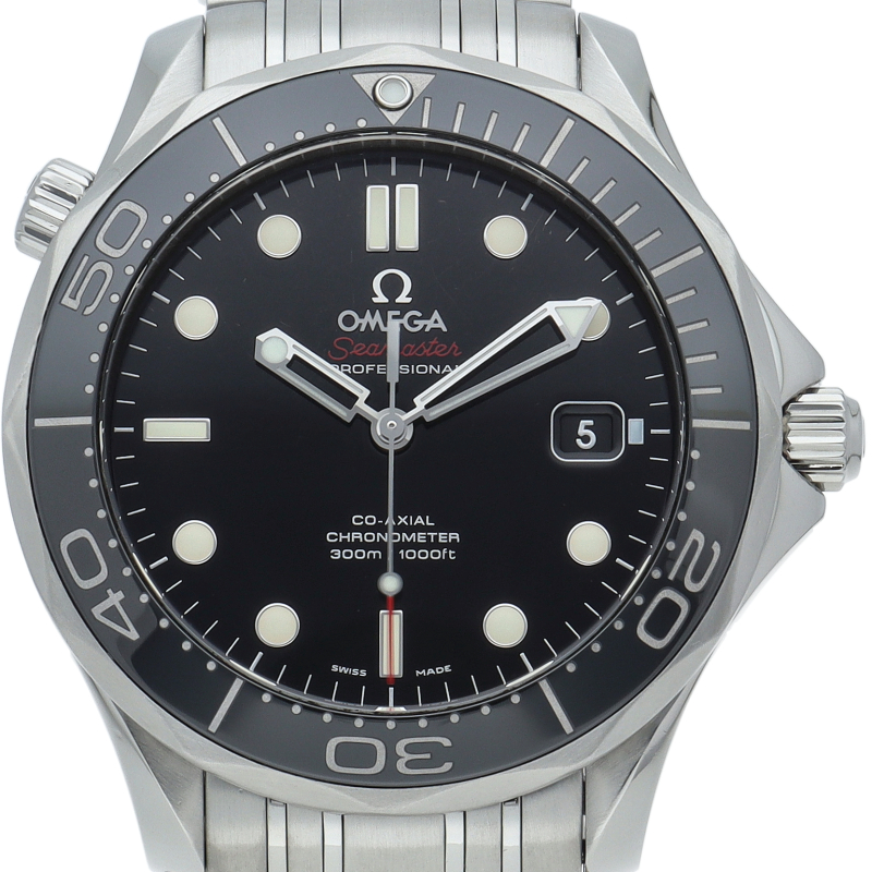 オメガを代表する人気ダイバーズウォッチ「シーマスター」。逆回転防止ベゼル・デイト表示機能等が搭載された本格派ダイバーズウォッチです。ベゼルが傷のつきにくいセラミック仕様に変更されました。