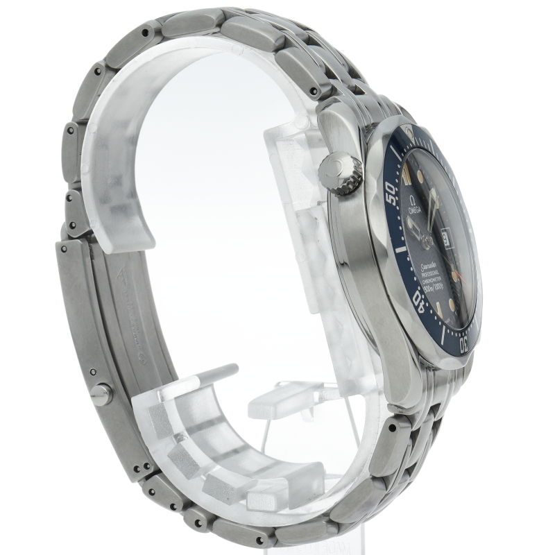 オメガを代表する人気ダイバーズウォッチ「シーマスター」。300mの防水性能を備え、文字盤には青い波の模様が入った実用性の高いベーシックなモデルです。