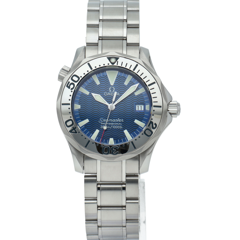 オメガを代表する人気ダイバーズウォッチ「シーマスター」。ヘリウムエスケープバルブを備えた本格的な多機能ダイバーズモデル。海を思わせるブルーのダイヤルが素敵です。