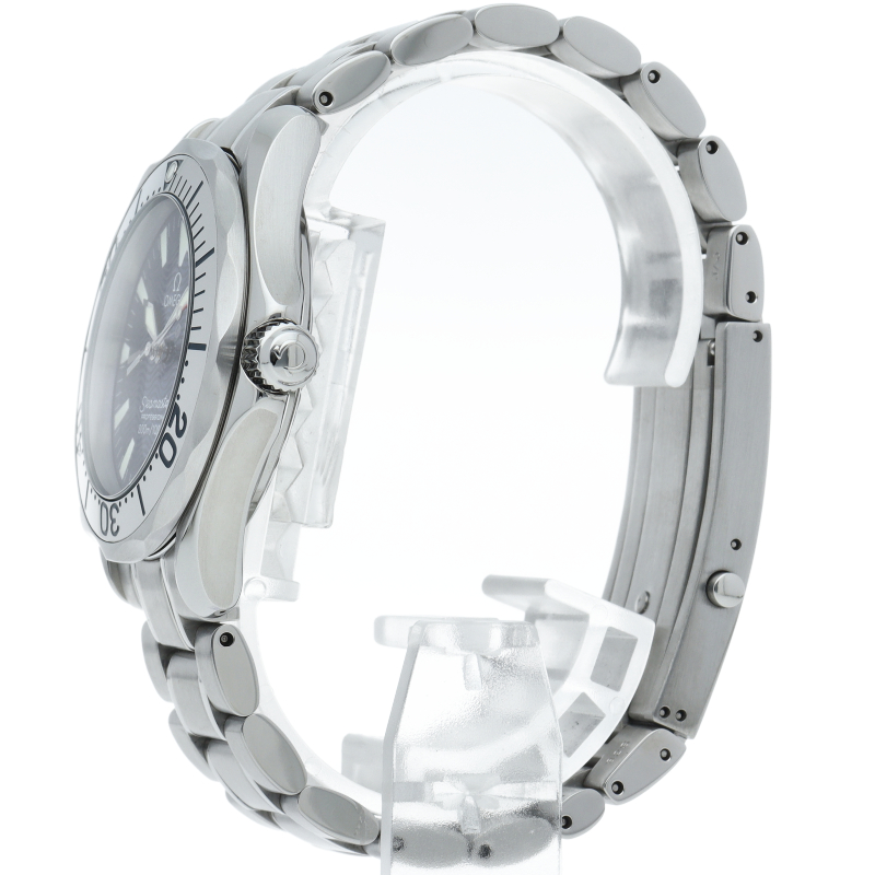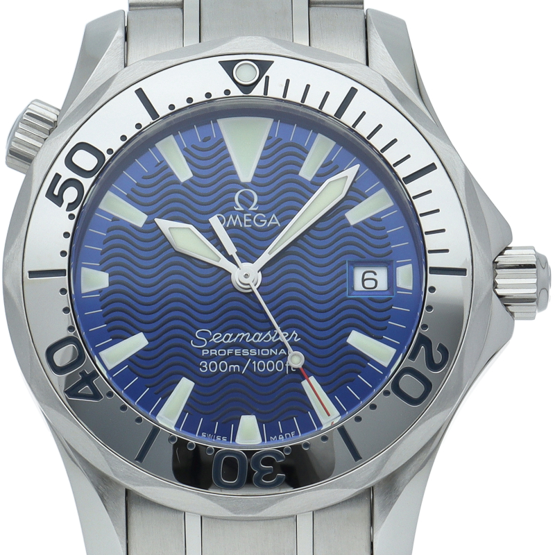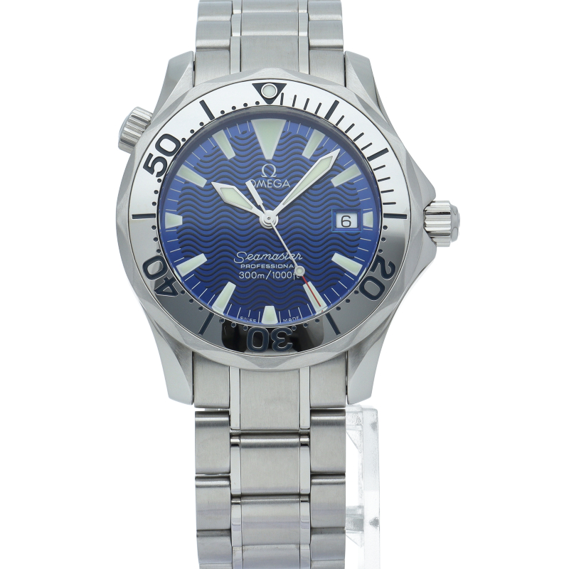 オメガを代表する人気ダイバーズウォッチ「シーマスター」。ヘリウムエスケープバルブを備えた本格的な多機能ダイバーズモデル。海を思わせるブルーのダイヤルが素敵です。