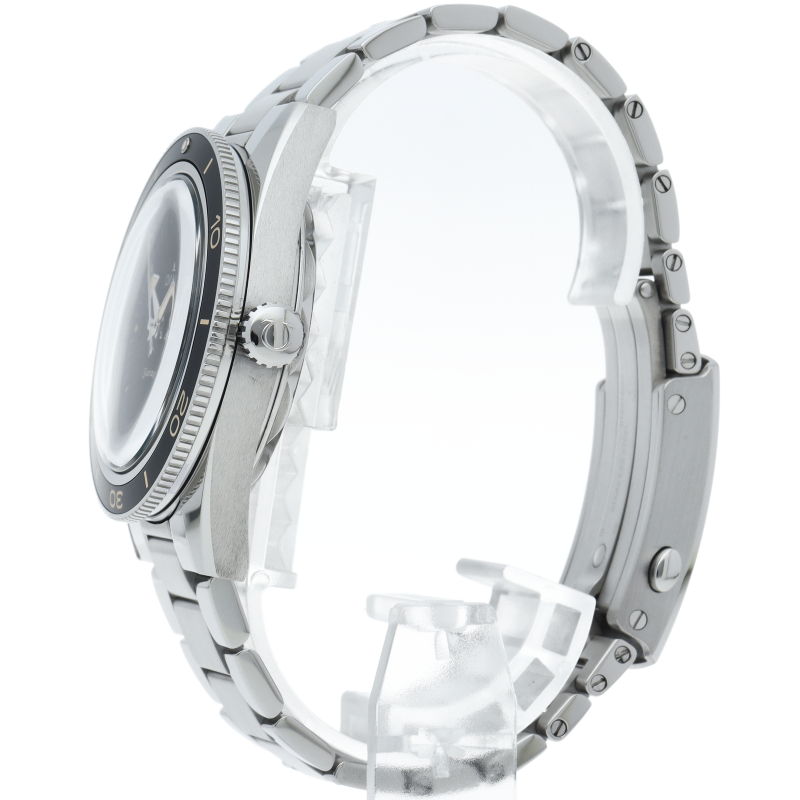 「シーマスター 300M マスター コーアクシャル」には、ヴィンテージのスーパールミノヴァを塗布した針を備えたサンドブラスト仕上げのブラックダイアルが採用されています。オールドオメガファンの方の日常使い用としてももちろんですが、その完成されたデザインは時計の歴史に詳しくない方にも魅力的ではないでしょうか。